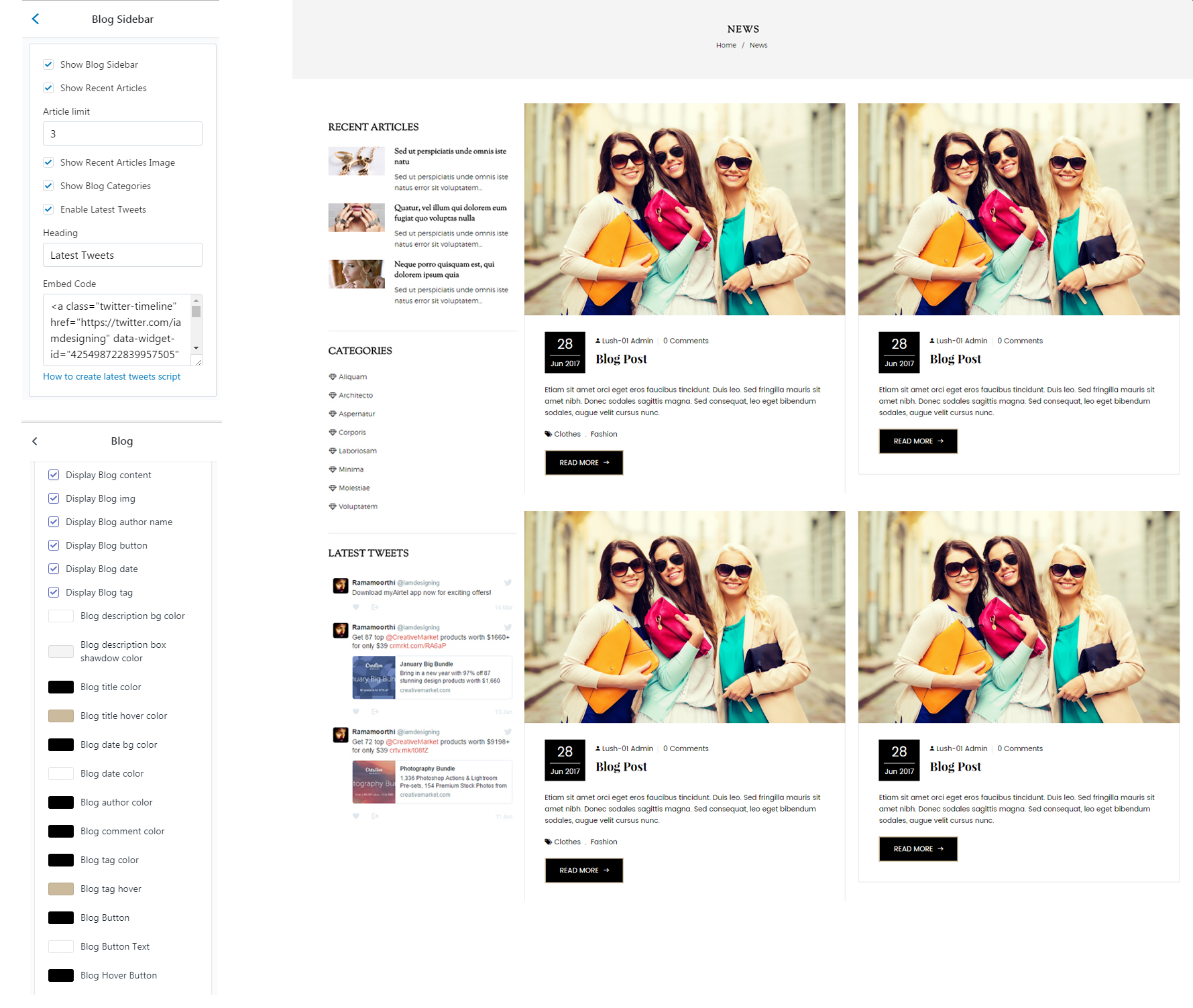 - Highly customizable: Change colors, fonts, background image through the theme settings. No coding required.
