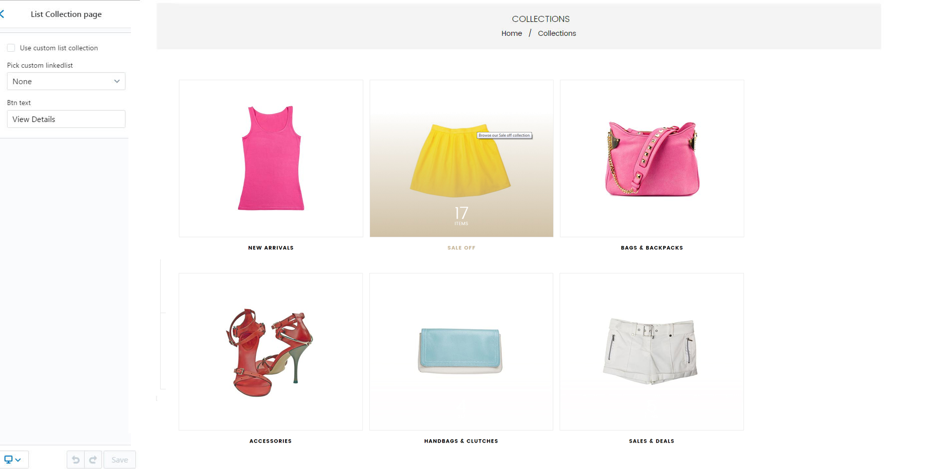 Collection page contains following options.
