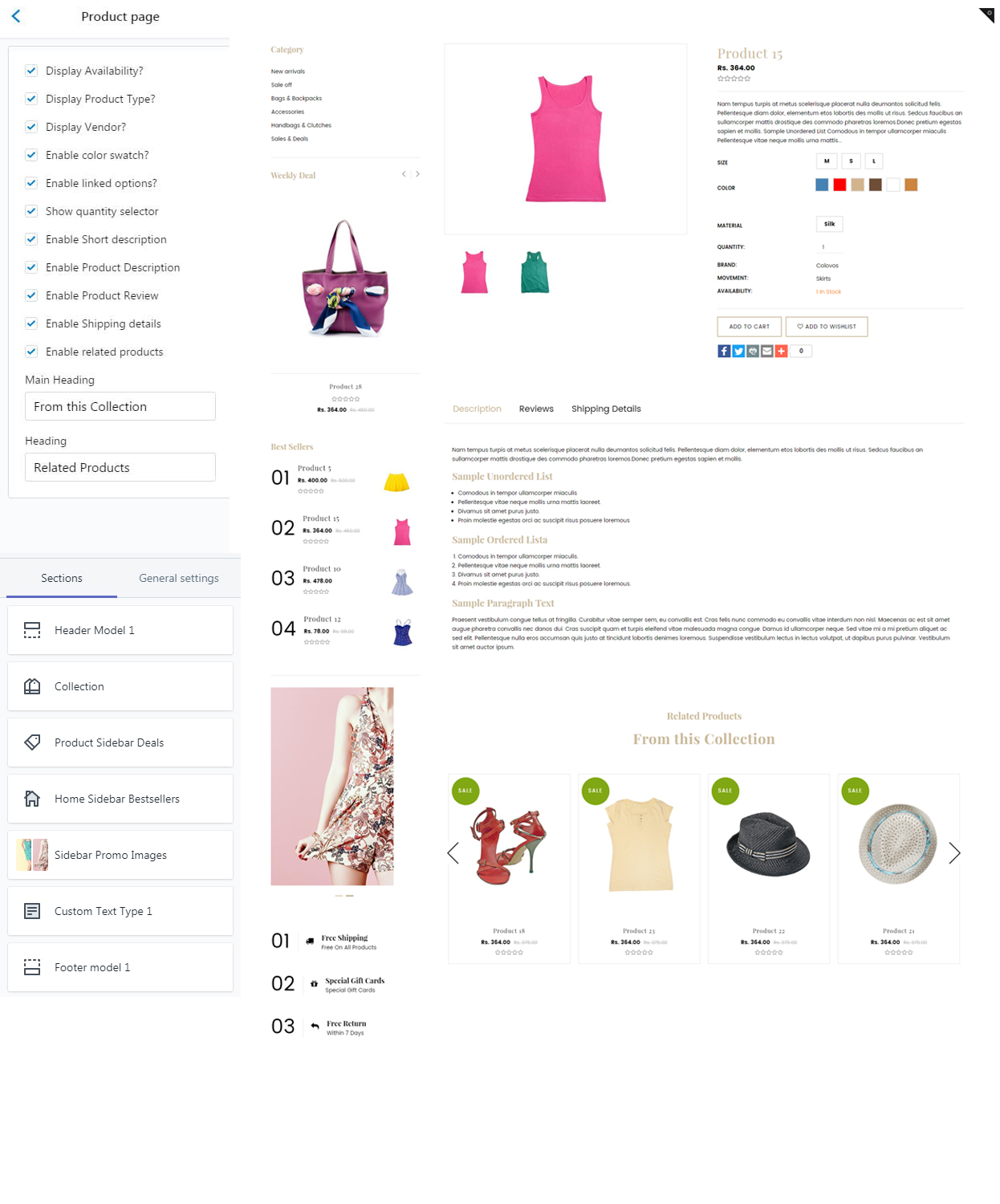 - And it provides product variants, Add to cart option,wishlist,product quantity,social sharing,related products.