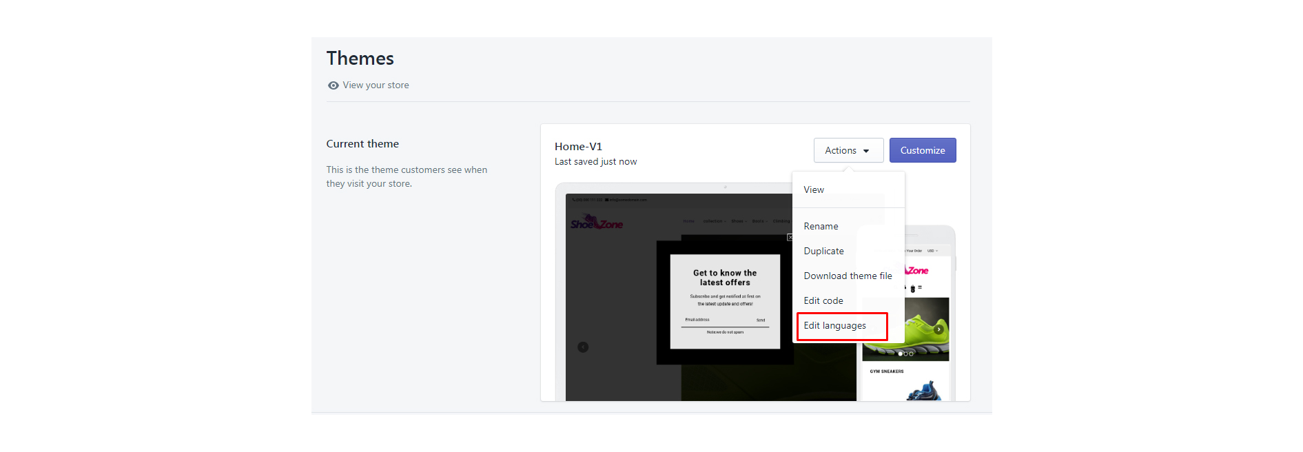 Getting up and running with Shoes is quick and easy. Simply create a Shopify account, purchase the theme and upload it. You'll then have the opportunity to customize it to your liking before publishing it as your main theme.