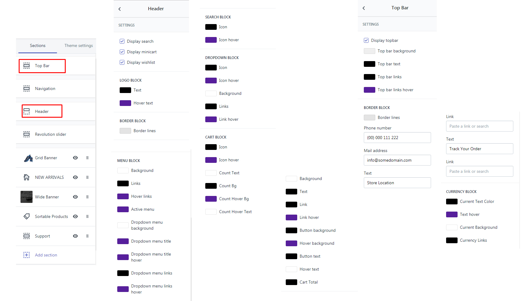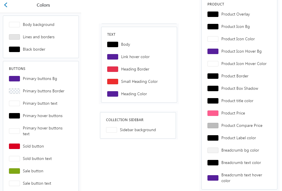 Note: *** Apart from these colors , we have included an option to change the section's heading and its relative block's color using color picker.You can find those color pickers respective sections.