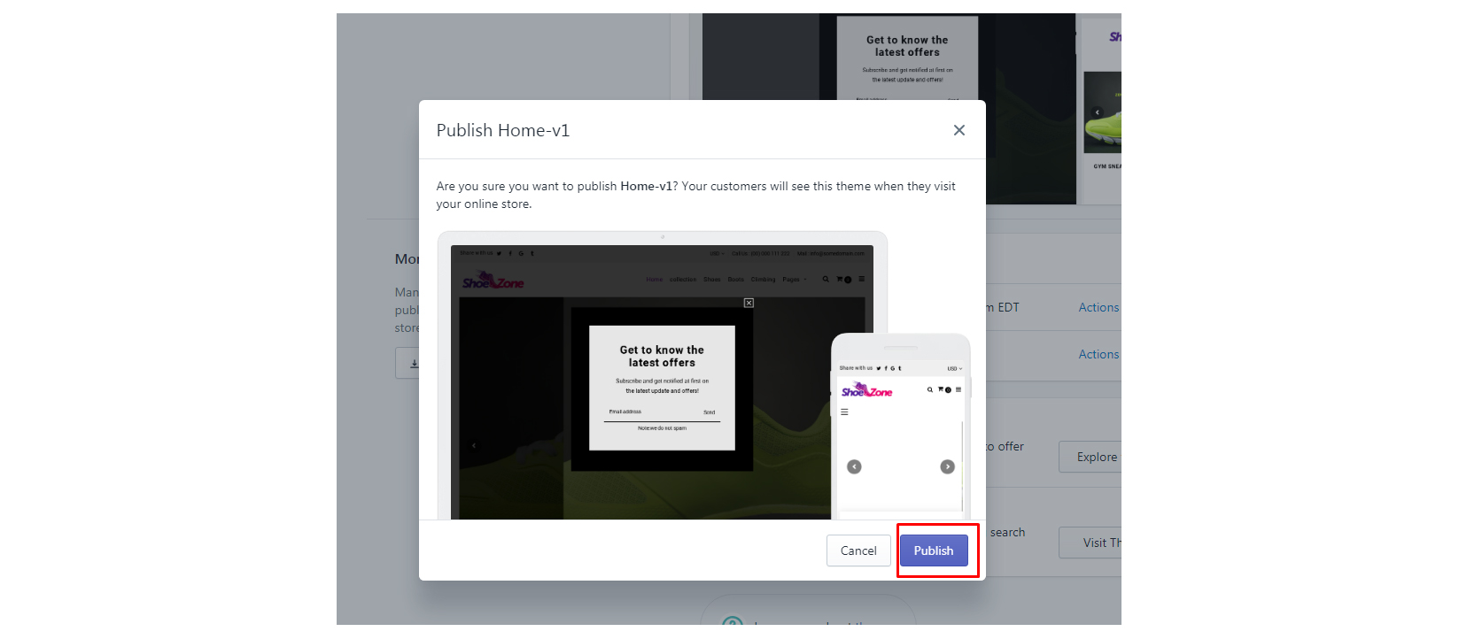 Click: Publish theme